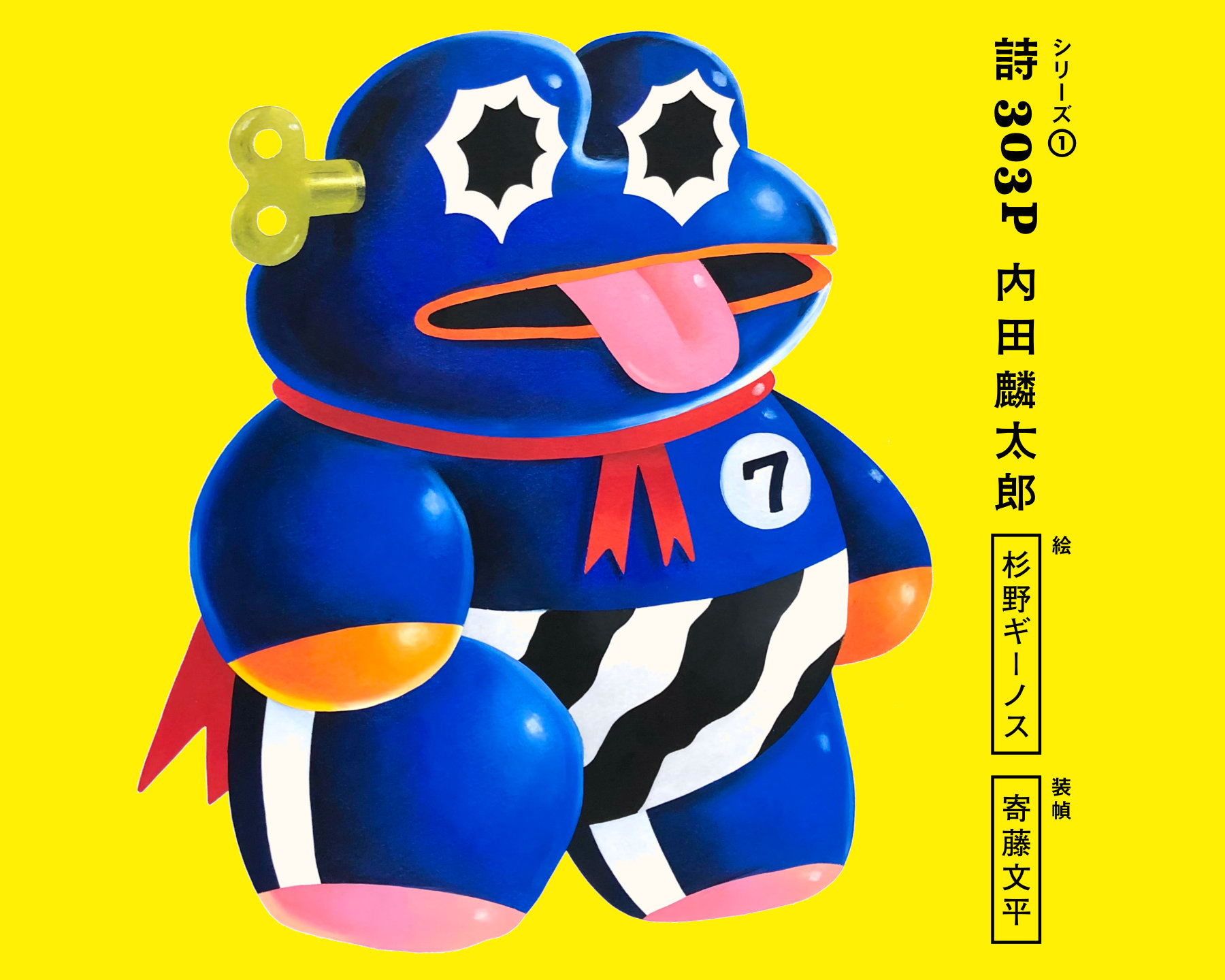 詩集の装画と挿絵は、独特なタッチと鮮やかな色彩で、今最も注目されているアーティスト、杉野ギーノスさんに描いていただきました。内田麟太郎さんは、あとがきで自身の詩と杉野ギーノスさんの絵のコラボレーションを「未知との遭遇!」と表現しています。「美しい抒情世界とブリキのおもちゃの出会い。これぞ少年世界でなくてなんでしょう。」と。そして、ブックデザインは数多くの本の装丁やアートディレクションを手がけている寄藤文平さん。3人の才能がぶつかり、織りなされたこの詩集と、読者のみなさんとの出会いもきっと「未知との遭遇!」になることでしょう。