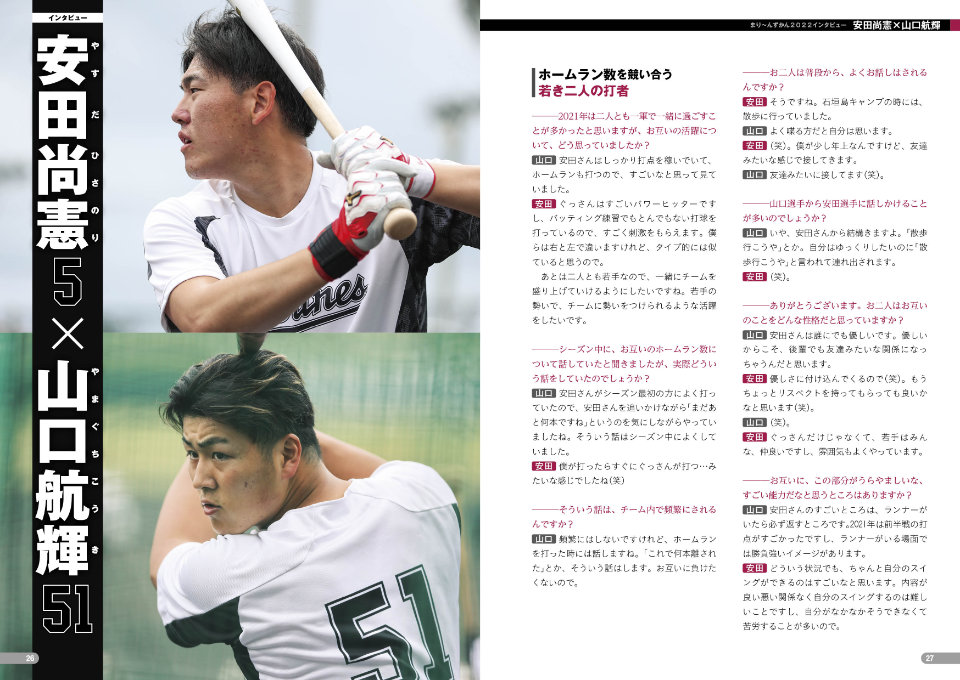 掲載内容(敬称略):荻野貴司/小島和哉/和田康士朗/安田尚憲×山口航輝/三家和真(スカウト)/田原大樹(通訳)
