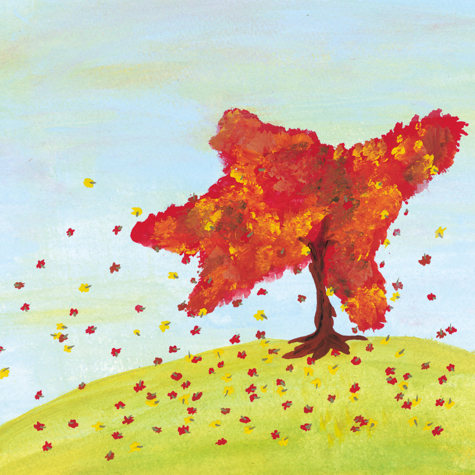 本作は長田真作が、SUMIREのライブ・アートパフォーマンスを目撃したことに始まります。そこからふたりは共作絵本の準備を始め、この物語を構想していきました。これまでの作品では、文章と絵をひとりで描いていた長田真作ですが、本作が絵本デビューとなるSUMIREに絵の執筆を委ねました。「ほろほろもみじ」は自然の中に生きる“こびと”リリアの物語です。この世界では、小さな生き物たちが、自然と共生し、利他的な行動で違いを乗り越え、互いの暮らしや文化を尊重しています。そんな長田真作の込めたメッセージに対して、SUMIREは、それぞれのキャラクターに命を宿すように1枚1枚描いていきました。落ち葉の間に、サルビアの花の上に、森の大樹の樹洞の中にあるリリアの足跡は、新たな物語となっていくのです。