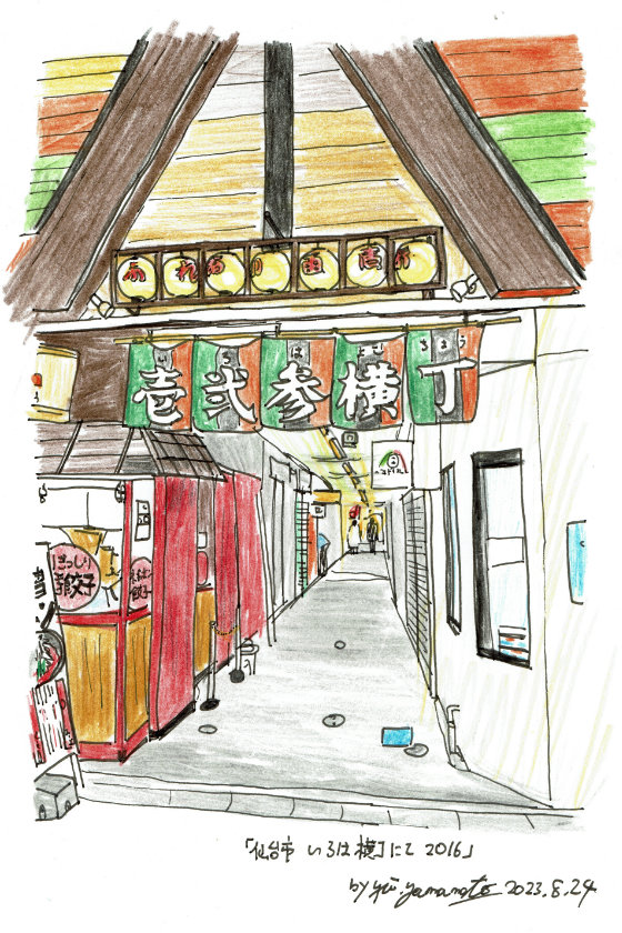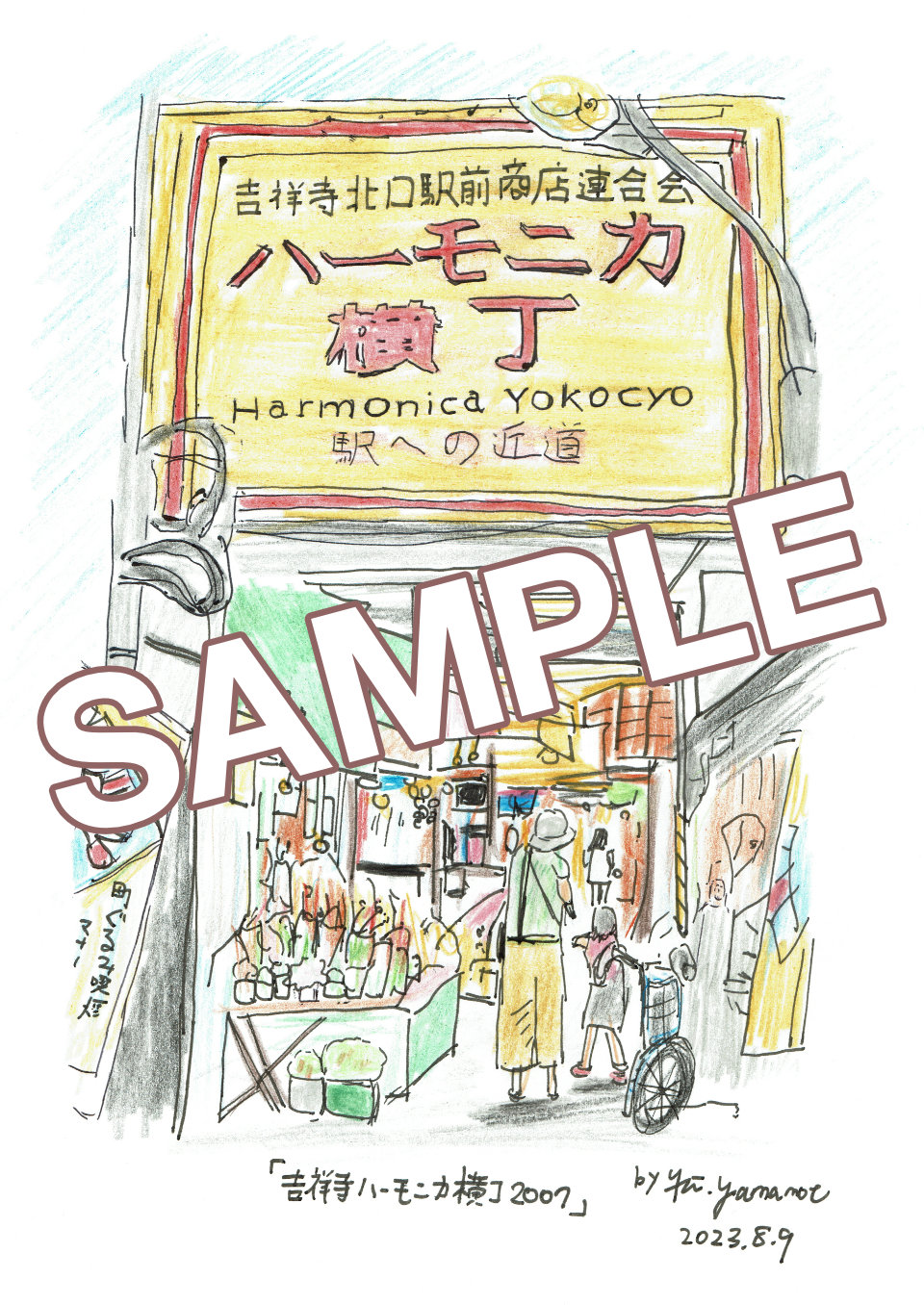 ハーモニカ横丁の書き下ろしイラストポストカード