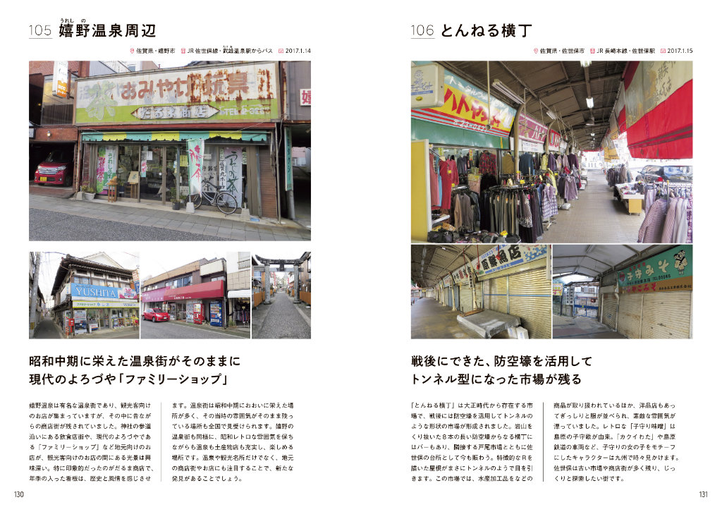 2010年から続く人気ブログ「香ばしい町並みブログ」の山本有氏が、地道なフィールドワークとして撮影し、記録してきた全国590箇所の中から、特に商店街にスポットを当ててセレクトした108箇所を写真と文章で紹介しています。そのすさまじくノスタルジックな街並みは、もはや、遺産という言葉を超え、遺跡と表現してていいほどの貴重な佇まいです。すでになくなっている商店街も多数掲載。また、読み物としての「商店街を巡る冒険の覚え書き」を掲載し、巻末には「全国探訪[590箇所]全リスト」、「昭和の商店街遺跡 全国探訪MAP」が付いています。