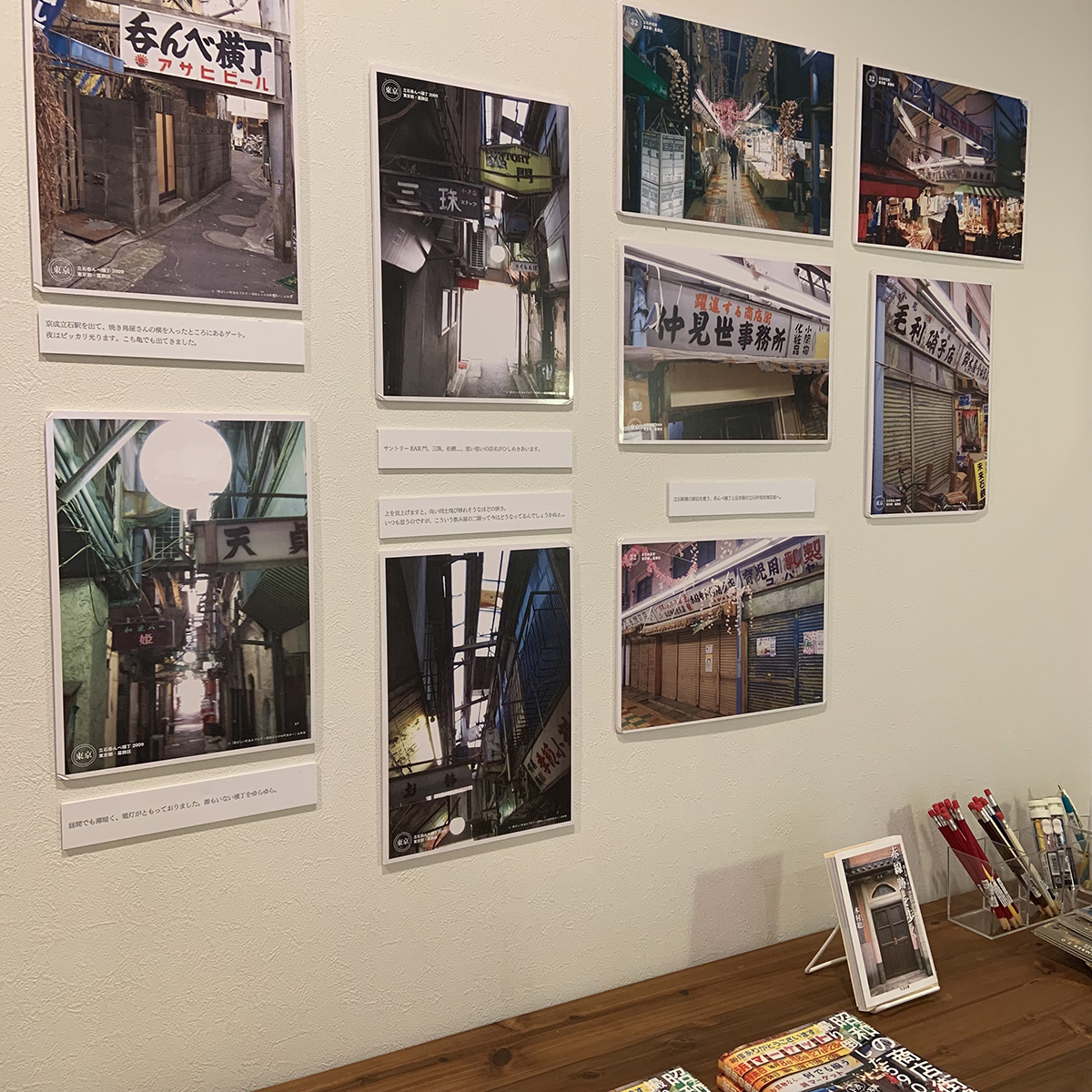 著者 山本有氏直筆のイラストと、山本有氏が撮影した商店街の写真を並列で展示します。